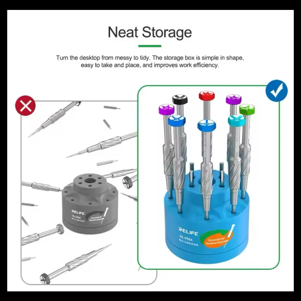 Relife RL-078 – صندوق تخزين مفكات متعدد الوظائف 360° بسعة 19 فتحة